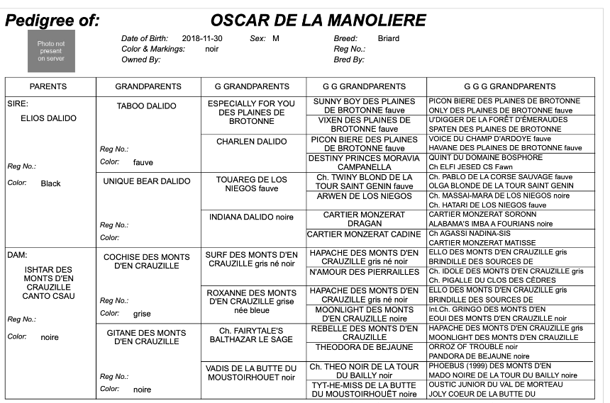 The stunning Oscar and our gorgeous Miss Coco Pops are expecting a lovely litter of black briards. This will be a stunning litter. Both parents are stunning dogs with fantastic outgoing personalities. They have excellent hips and elbow scores and easy care coats.
